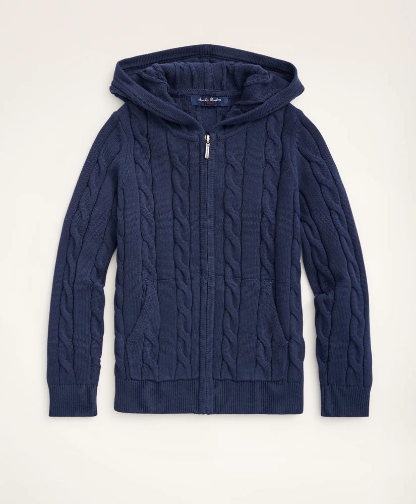 A great addition to his school & weekend wardrobe, this sweater can be worn zipped up or open showing off his favorite polo or tee. Classic cable-knit pattern hoodie with a full-zip closure.