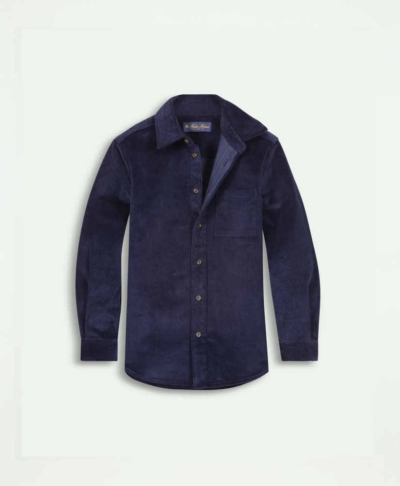 Fine-wale corduroy shirt can be worn open as a shirt jacket.