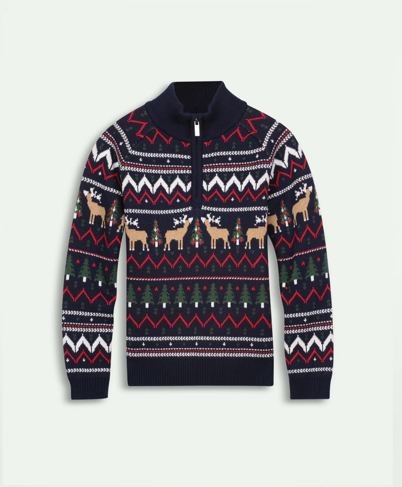 Boys Cotton Half-Zip Fair Isle Sweater