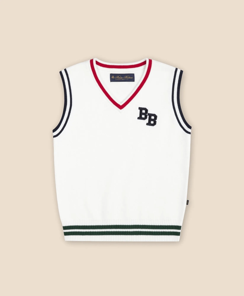 Go Varsity! We crafted our sweater vest from pure cotton yarns with adorable heritage college-prep details, including contrast tipping and BB chest embroidery. A stylishly cozy way to layer up this season.