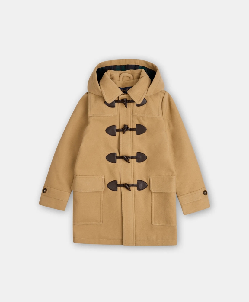 We took a perennial bestseller, the duffle coat, and scaled it down to be a perfect miniature fit for style that goes the distance. A Black Watch tartan lining and removable hood finish the coat with elevated attention to detail.