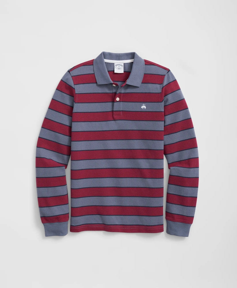 A classic he'll love to wear all season, we crafted our polo from traditional pique knit with heritage horizontal stripes and our unmistakable signature fleece logo that nods to consummate quality.