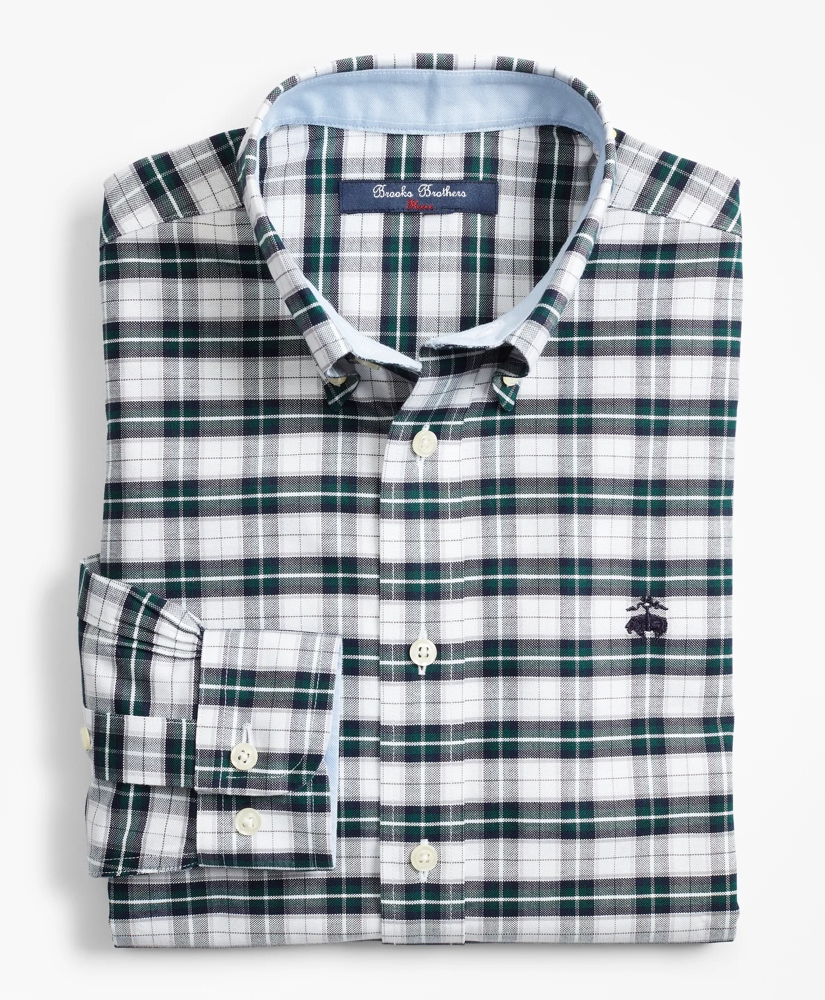 Our non-iron sport shirt is crafted in cotton oxford and specially treated to remain virtually wrinkle free. Button-down collar and our signature 6-Pleat Shirring® at the barrel cuffs. Plaid pattern with our fleece embroidery at wearer's chest. Machine wash according to care instructions for best performance. Imported.