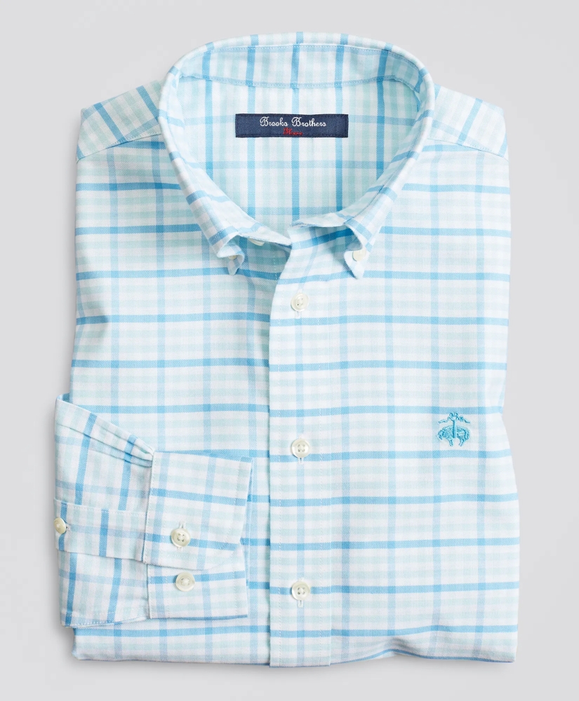 Our non-iron sport shirt is crafted in cotton oxford and spandex, specially treated to resist wrinkles. Button-down collar and our signature 6-Pleat Shirring® at the barrel cuffs. Multi-gingham pattern with our fleece embroidery at wearer's chest. Machine wash according to care instructions for best performance. Imported.