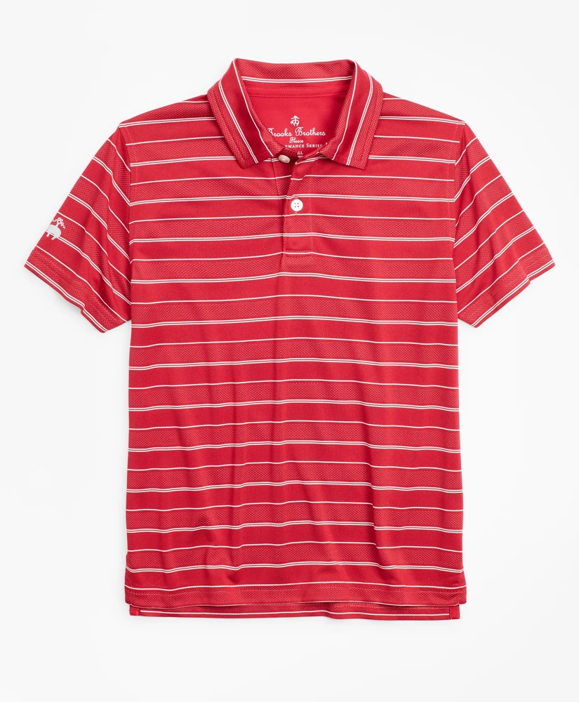 Our Performance Series polo is crafted in a breathable, wrinkle resistant and moisture-wicking polyester and spandex blend. Heat transfer logo at wearer's right sleeve. Ribbed collar. Machine wash. Imported.