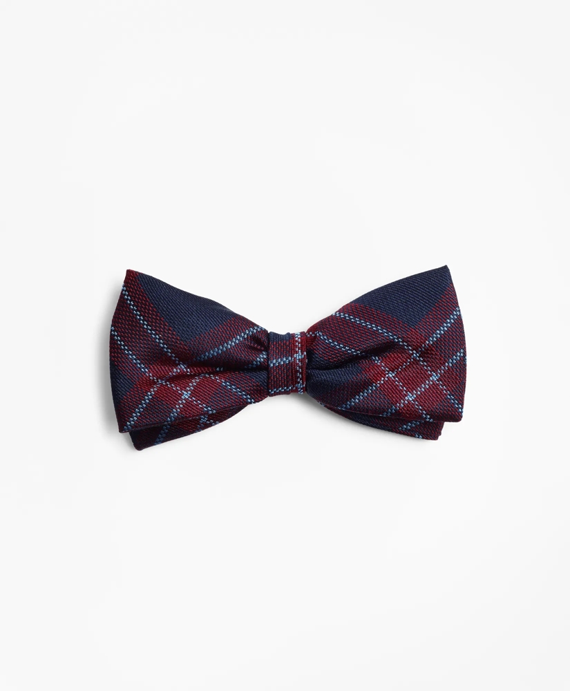 This pre-tied bow tie is crafted from pure silk in a plaid print. Dry clean. Made in the USA from imported materials.