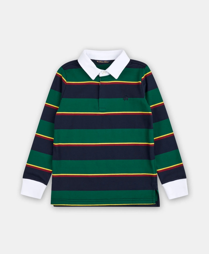 Just like the grown-up version, our rugby for your little guy features a 100% cotton fabrication, classic horizontal stripes and contrast woven details complete with buttons at the placket. Its thick knit makes it a perfect weight top for fall.