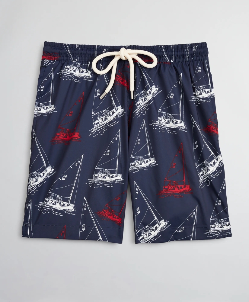 Boys Sailboat Print Swim Trunks