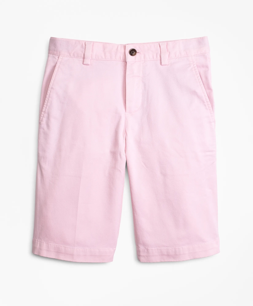 Our chino shorts, now with stretch, are garment washed for a soft hand feel. Novelty striped oxford pocketing. Adjustable waistband on sizes 4-12 fine tunes for the perfect fit. Hidden snap button front on sizes 4-6. Machine wash. Imported.