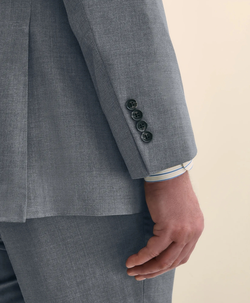 Cut in performance wool woven in Italy, the Brooks Brothers Explorer Collection combines iconic tailoring with the latest in fabric innovation. The result: a suit ready for anywhere you're headed. We started with lightweight Super 100s wool crafted by the Vitale Barberis Canonico mill and gave it just-right stretch for comfort. Then we made it wrinkle-resistant and water-repellent, so minor spills and bumps on the road pass by without pause.