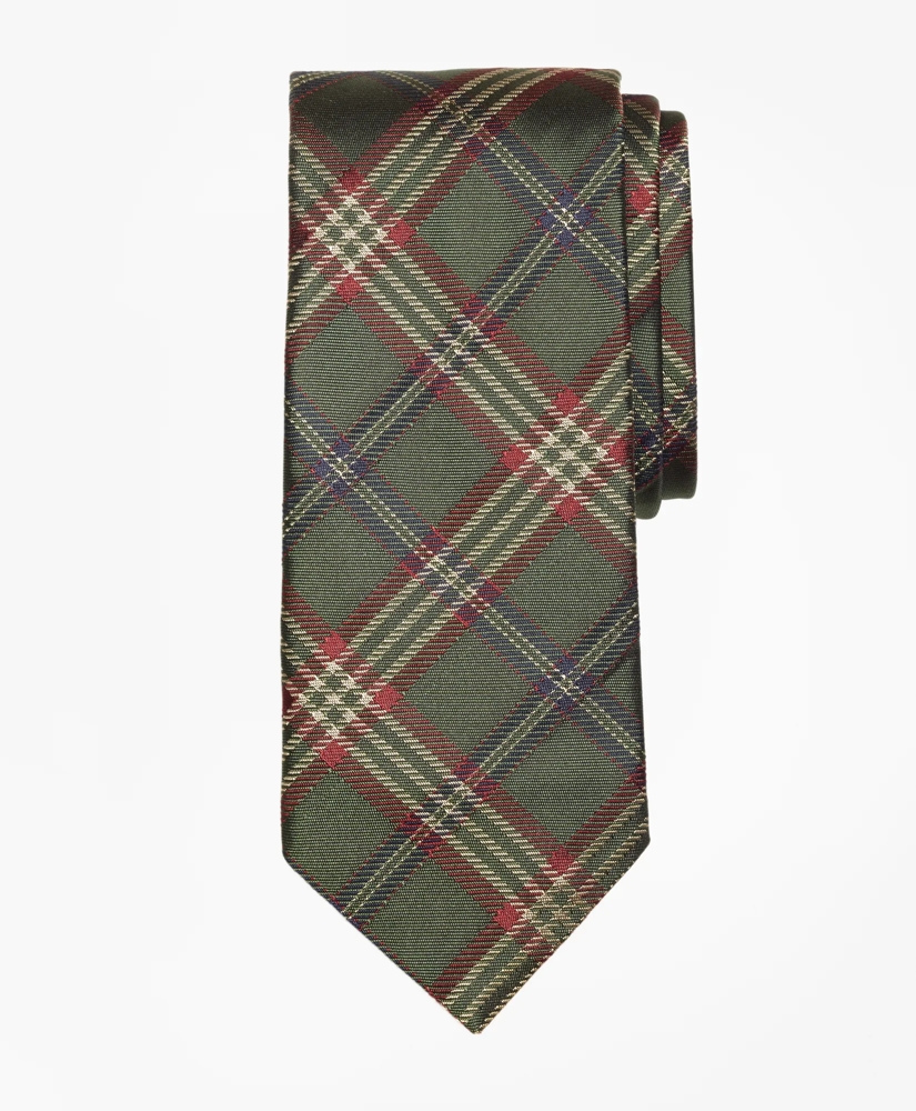 Tie made from pure silk, woven in England. Regular length is 58". Extra-long is 62". Width is 3 ¼". Dry clean. Made in the USA.