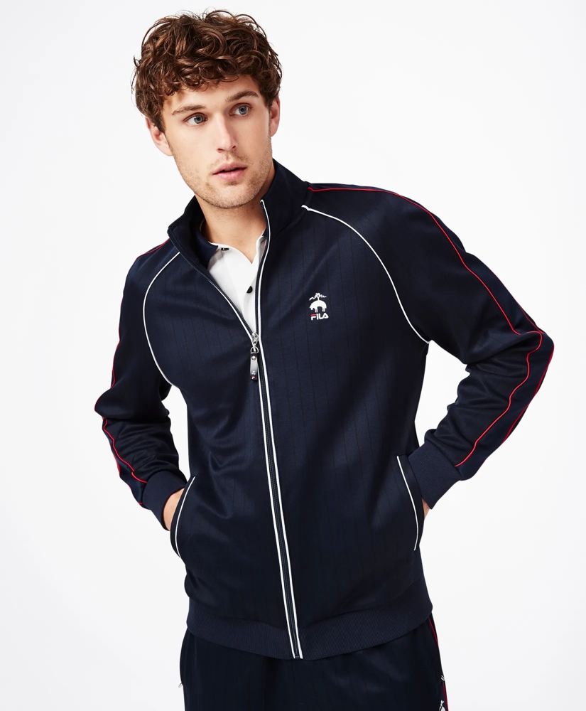 The Brooks Brothers x FILA Collection combines our heritage of classic American fashion and FILA's tennis-inspired roots into refined sportswear and accessories perfect both on and off the court. This striped warm-up jacket will keep you comfortable before your next match and is made from poly-cotton for comfort that lasts. Two side pockets; our BBxFILA logo at the chest; and ribbed sleeve cuffs, collar and hem.