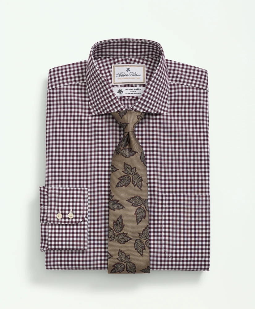Brooks Brothers X Thomas Mason® Cotton Twill Londoner Collar, Gingham Dress Shirt