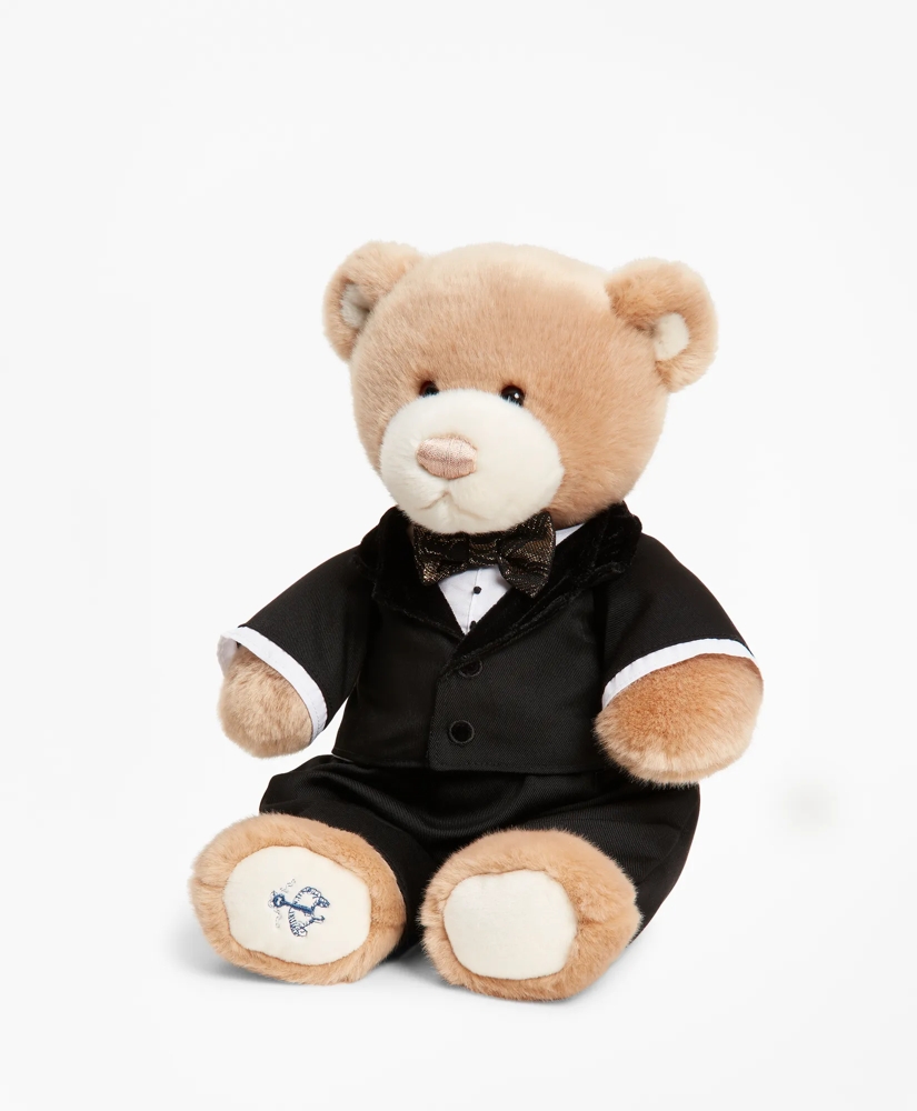Brooks Brothers is proud to partner with Gund®, the oldest manufacturer of soft toys in the United States, to offer a seasonal collection of adorable his-and-hers teddy bears. Dressed in their best, these bears make perfect gifts. Brooksie® wears a festive tuxedo and bow tie to celebrate the season in style. Our logo at the right paw adds Brooks Brothers authenticity. This super-soft, super-huggable bear is ready to be loved by your littlest ones. Created exclusively for Brooks Brothers, each Brooke® and Brooksie® bear is 11" tall and made of soft, high-density acrylic plush material. Only for ages 3 and up. Please remove all hangtags before giving to a child. Imported.