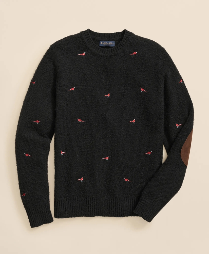 Brushed Wool Pheasant-Embroidered Sweater