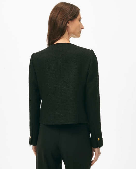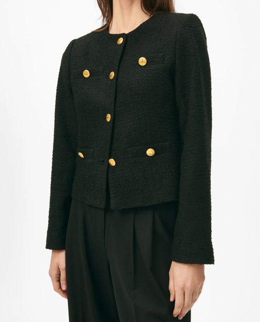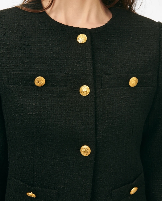 Stunning details define our high-waisted boucle skirt inspired by iconic style. It's an ideal piece for making a sophisticated statement with its classic texture and gold-tone embossed buttons. Additional features include a full lining and side-zip closure. Pair it with our boucle jacket for a full look.