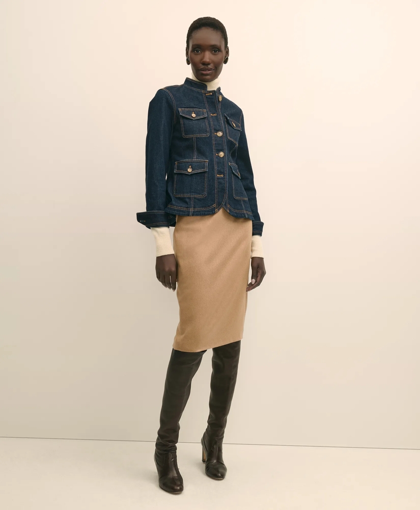 From the renowned Tollegno mill, our camel hair pencil skirt offers a flattering high waist, full lining, and a classic back vent, an elegant foundation for the season's tailored looks. We love pairing it with our silk camisoles and blouses for luxurious desk-to-dinner looks.