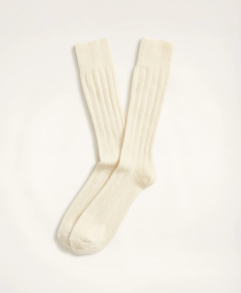 Our socks are known for their exceptional comfort and durability. Soft cashmere knitted in a classic rib sock, perfect for cozy lounging. Knitted with Lycra® to maintain its shape throughout the season.