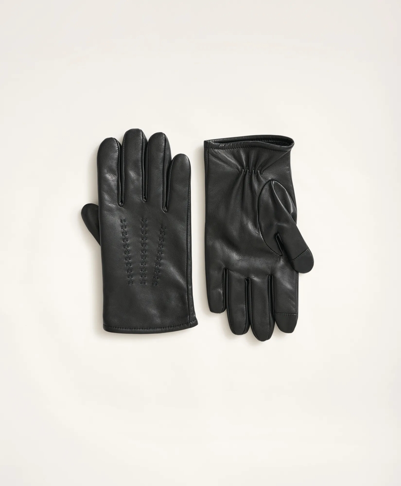 Genuine lambskin gloves with a cozy cashmere lining and elasticized opening for a perfect fit. Features touch tip at index finger and thumb. Professional leather clean only. Imported.