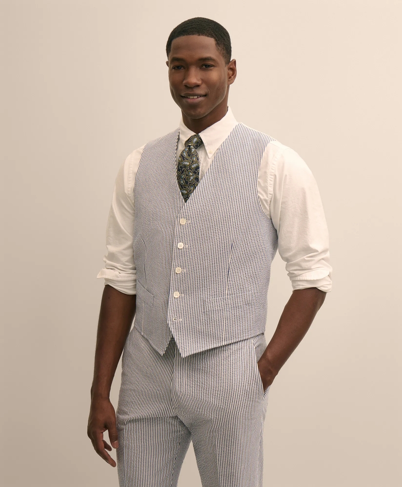 Classic Fit Cotton Blend Seersucker Vest
