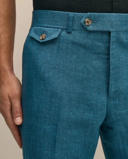 Crafted in beautifully breathable linen and woven in a stunning herringbone weave by Italy's renowned Solbiati mill, our dress pants are inspired by all-American style. A plain front offers versatility while our half-lining to the knee displays our exacting attention to detail.