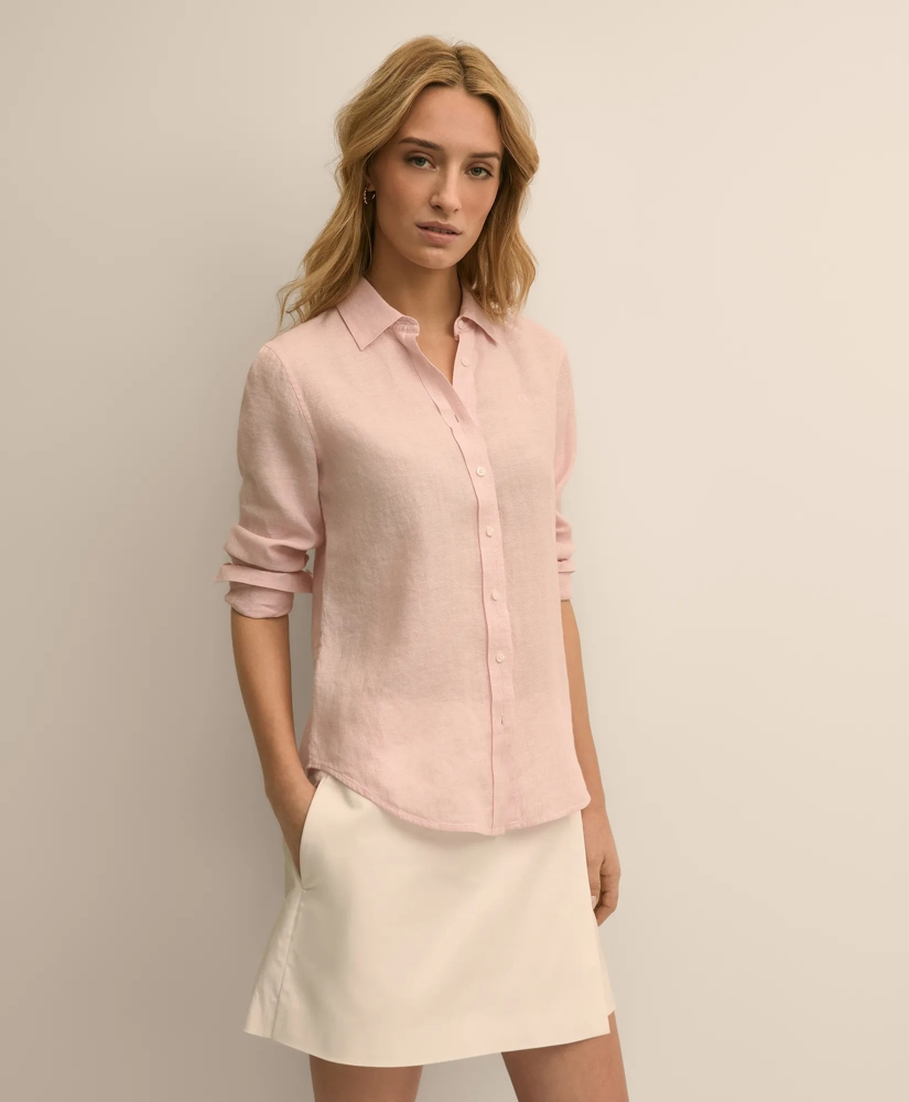 We crafted this warm-weather essential from 100% linen, using a cross-dye technique to bring subtle dimension and depth to the color. The classic fit offers an easy drape through the body, while the 26" length adds styling versatility. Our Golden Fleece® embroidery at the chest adds a quiet signature, grounding the piece in classic style.