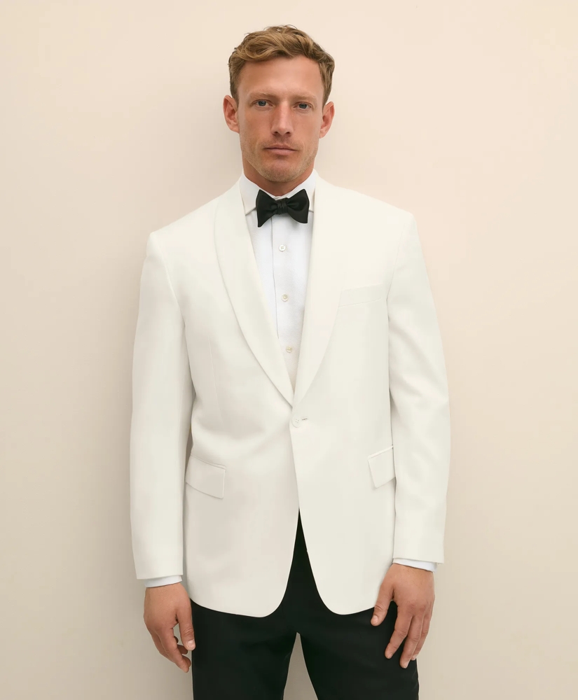 Classic sophistication defined; our shawl-collar dinner jacket is a must-have for every formal occasion on your seasonal event roster. Made from the world's finest Italian-woven fabrics and internal canvas, our flagship 1818 Collection celebrates heritage made iconic from over two centuries of attention to detail. You'll feel the difference in hand-tailored arm openings for comfort, fully stitched craftsmanship that enhances longevity and framed interior pockets for all your little necessities. Our wool features natural stretch that lets you move with ease, and our half-canvas construction conforms to your build for a fit that feels nothing less than custom. From the perfect lapel roll to a beautiful drape, you'll look and feel your very best.
