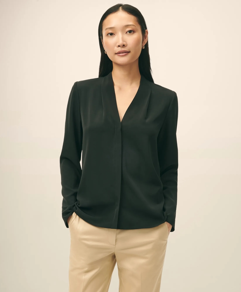 Step out in perfection with our open-V-neck blouse designed for a beautiful drape that feels as good as it looks. We love it paired with our crepe pencil skirt and trousers for a chic everyday statement.