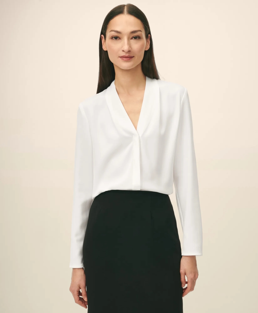 Step out in perfection with our open-V-neck blouse designed for a beautiful drape that feels as good as it looks. We love it paired with our crepe pencil skirt and trousers for a chic everyday statement.