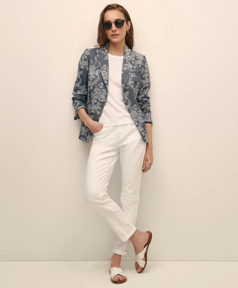 Elevated peak lapels and a striking floral jacquard weave define our one-button jacket. Wear it with our matching skirt for a coordinated look or pair it with jeans and a tee for instant polish.