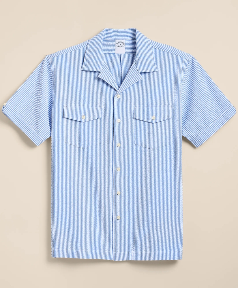 Two iconic features come together in our cotton-blend shirt: the retro-inspired camp collar and seersucker, the fabric we popularized in the early 20th century. We finished with a hint of stretch and soft garment-wash for all-day comfort that goes perfectly with classic style.