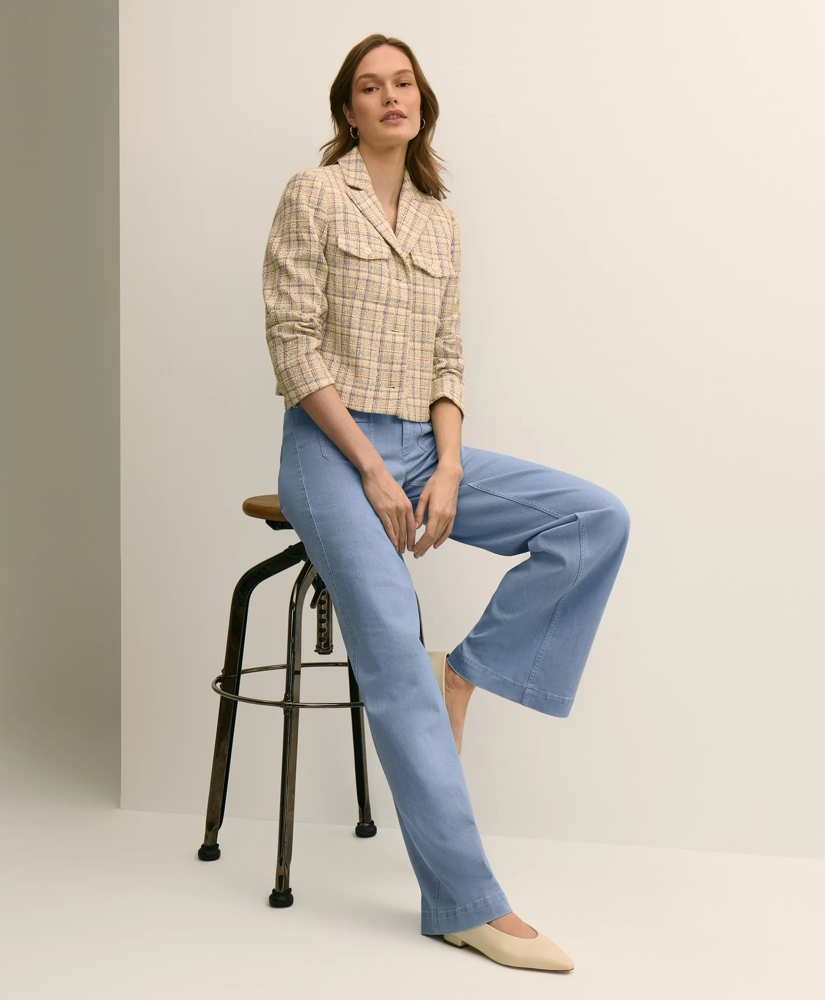Our cotton-blend tweed jacket catches the light with delicate metallic fibers that subtly dress up your look. A cropped silhouette keeps the heritage-inspired piece modern. Pair it with jeans or dresses and skirts for max versatility.
