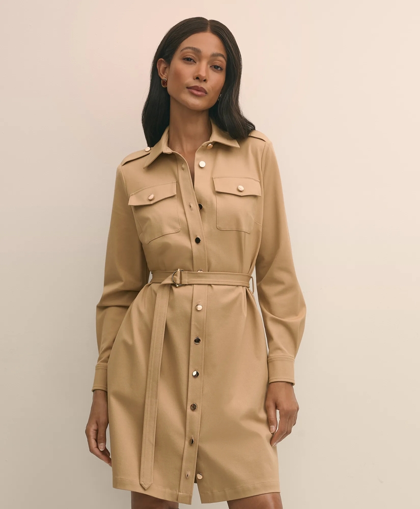 You're golden in our classic shirt dress punctuated with pretty burnished accents like metal buttons and a D-ring belt. A comfortable cotton blend and just-right stretch give you an ideal piece to reach for all season.