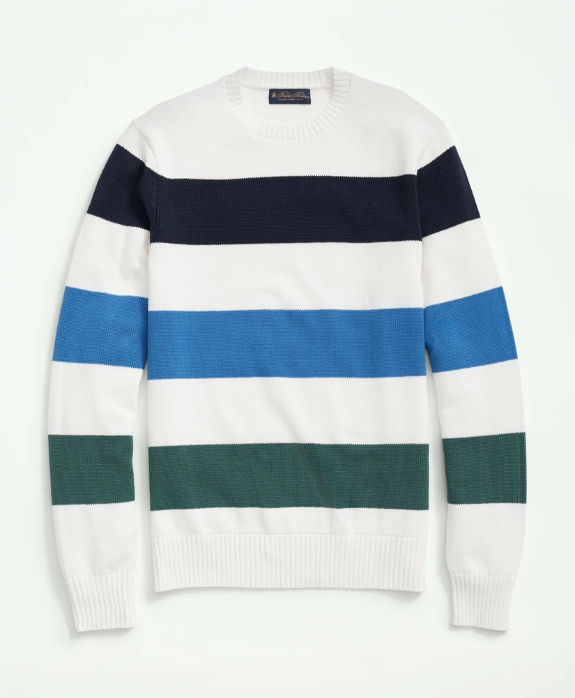 We took bold stripes inspired by the sporting life and knit them in soft breathable cotton, so your transitional-weather layering looks as good as it feels.