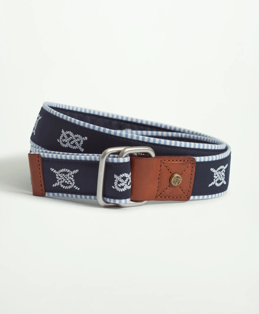 Our cotton belt features a nautical knot motif with stripe detail and leather tabs for a seasonal essential that holds up year after year.