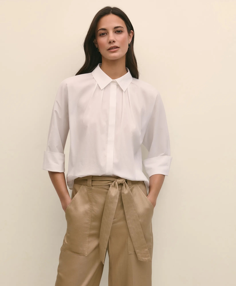 Cotton Dobby Relaxed Dolman-Sleeve Shirt