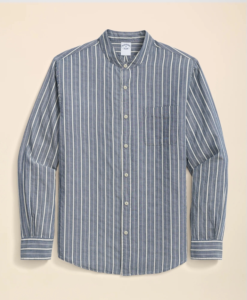 Cotton Dobby Stripe Stand Collar Sport Shirt