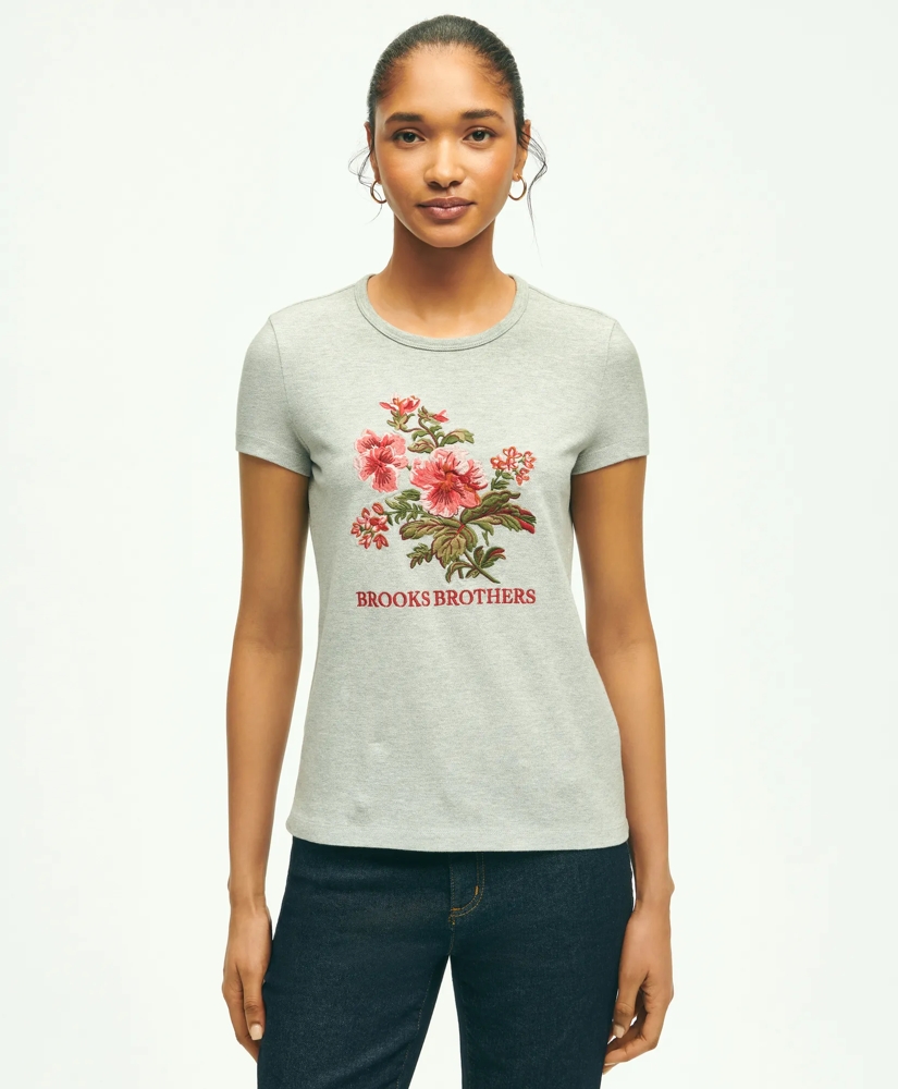 An embroidered fresh bouquet adorns our ultra-soft pure cotton tee along with the inimitable embroidered Brooks Brothers logo.