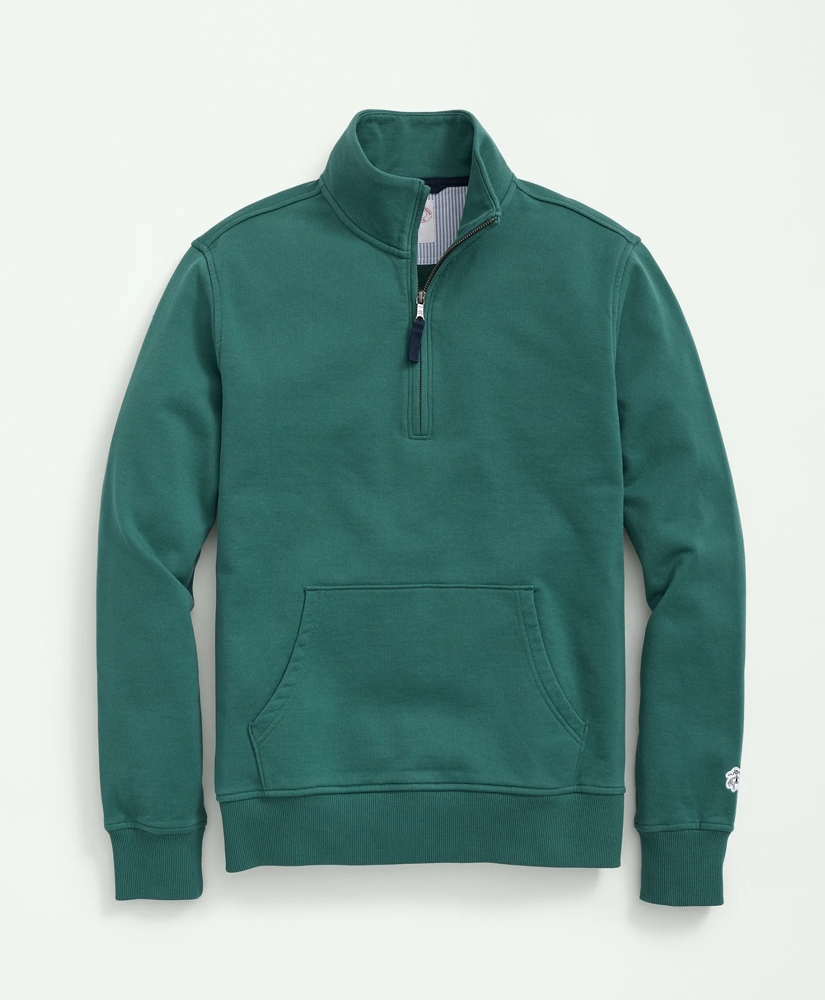 A wardrobe staple, our half-zip features substantial French terry cotton that keeps you toasty through chilly morning workouts and transitional temps. Signature Brooks Brothers details, like woven herringbone taping, add a sophisticated finish to one of your new go-to casual styles.