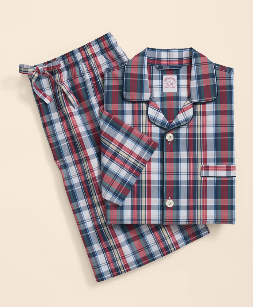 Cool, comfortable and ready for bed, our PJ shorts set means business when it comes to sleeping, or lounging, in total comfort. Our short-sleeve top is styled with a left breast pocket, piped edges and paired with elastic waist shorts.