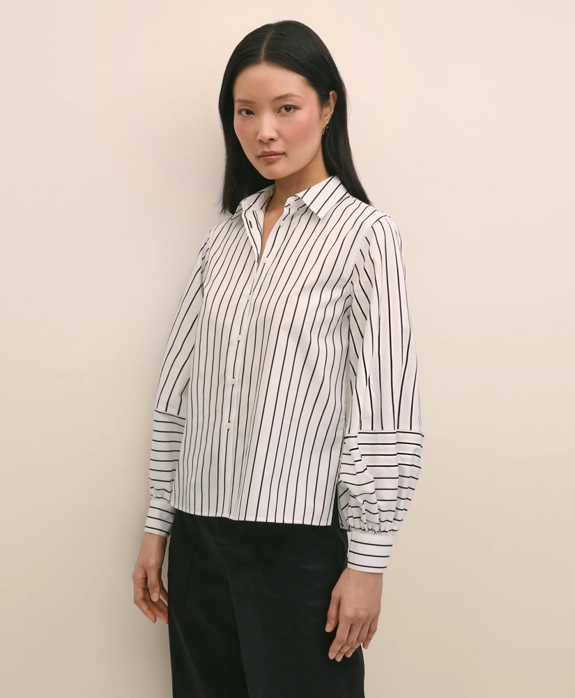 Cotton Poplin Contrast-Stripe Blouson Sleeve Shirt