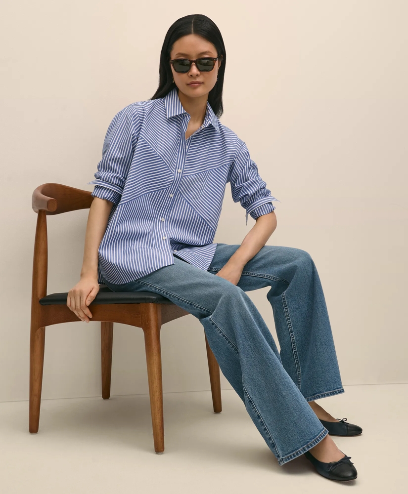Classic stripes made modern. With a relaxed fit in cotton poplin that works perfectly with your polished casual wardrobe, in an updated contrast pattern. Your new perennial closet staple.