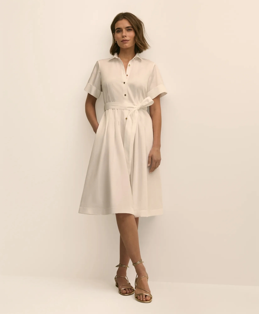 Cotton Sateen Short-Sleeve Belted Shirt Dress