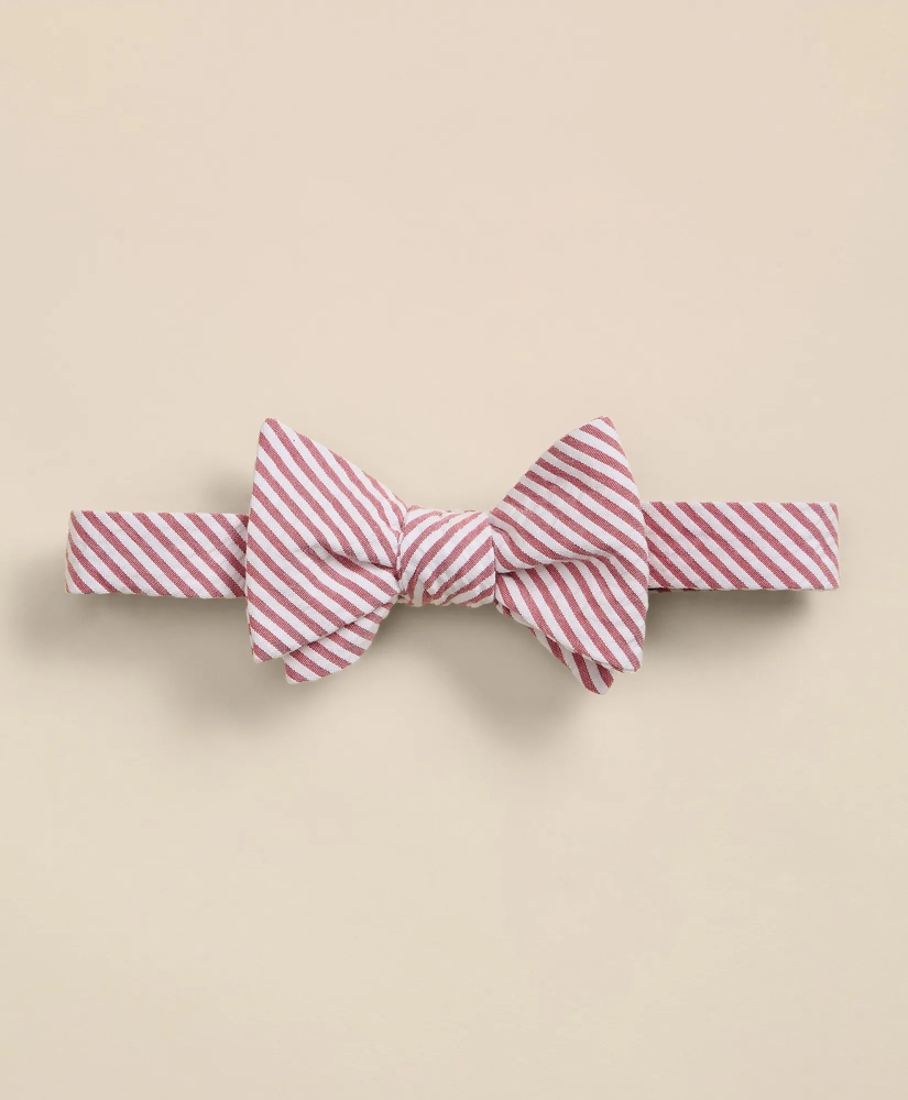 Stretch cotton woven in a classic pattern features a stripe motif in our timeless seersucker bow tie.