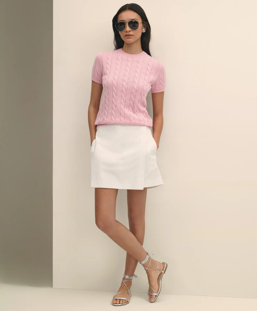 Mixing form and function, our cute cotton skort has a wrap skirt front and exposed shorts at the back. On-seam pockets and a touch of stretch make these a must for active days that sacrifice nothing to style.