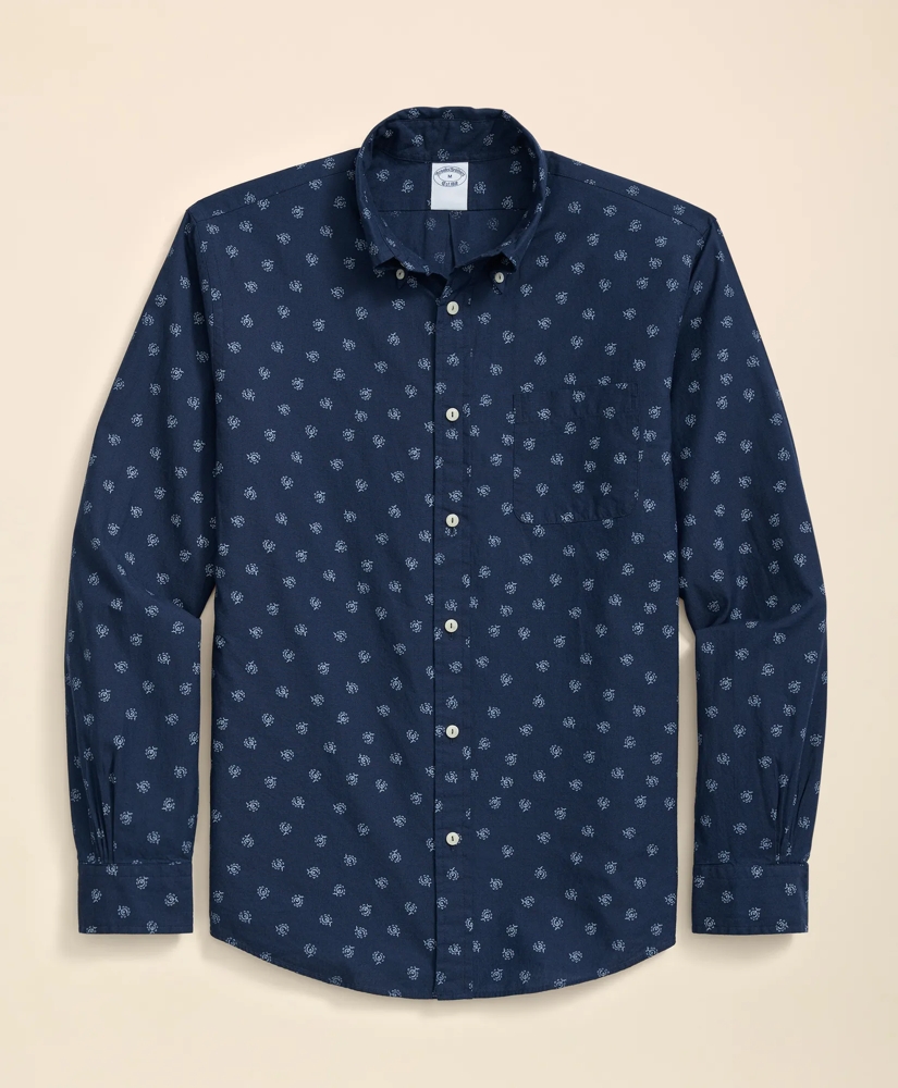 A so-soft special wash for a lived-in feel and handsome foulard pattern. Our sport shirt is made with the quality you've come to love and expect with special attention to a perfect fit. Add it to your wardrobe today.