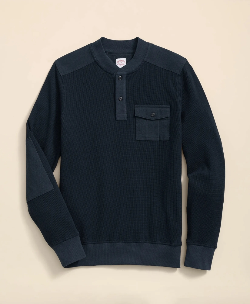 Our amped-up henley features a wool-cotton blend for extra warmth, a baseball collar for a sporty touch and a garment wash that feels lived-in from the very first wear. We finished it with casual-cool elbow patches and a chest pocket.