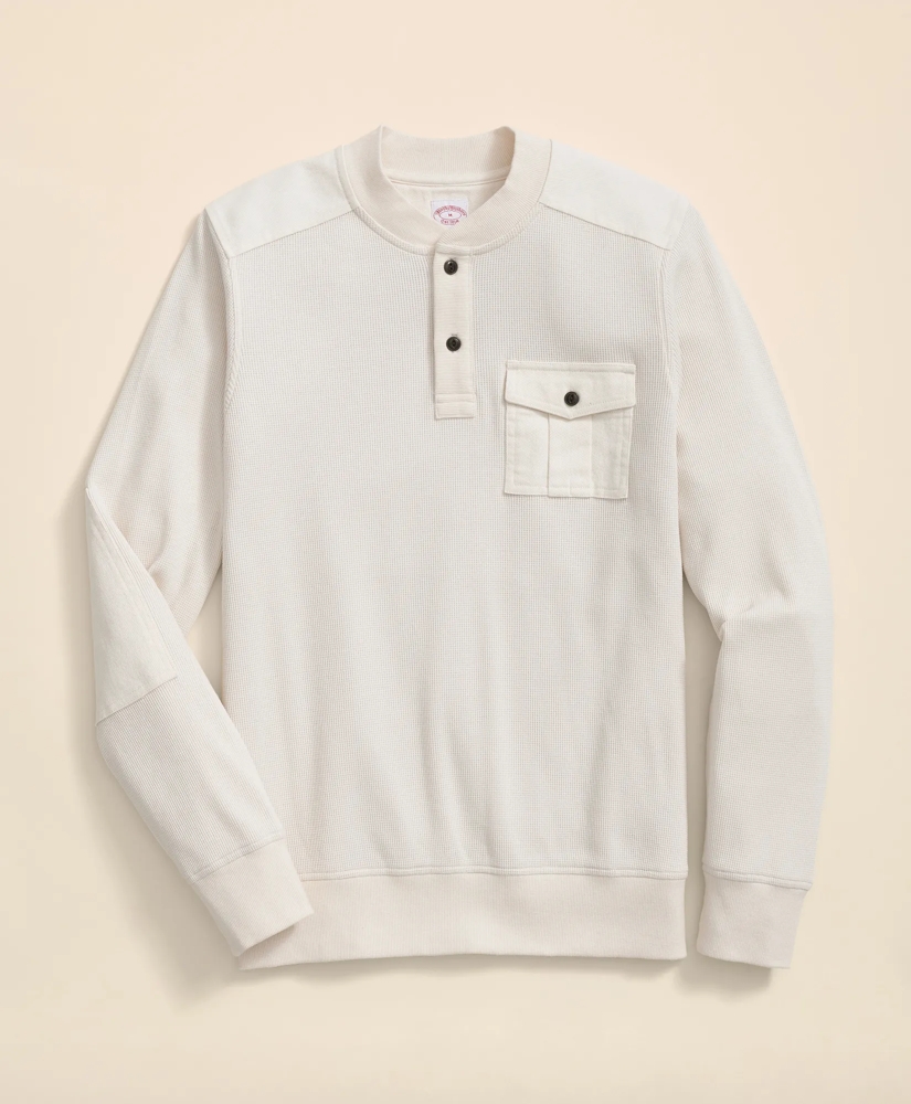 Our amped-up henley features a wool-cotton blend for extra warmth, a baseball collar for a sporty touch and a garment wash that feels lived-in from the very first wear. We finished it with casual-cool elbow patches and a chest pocket.