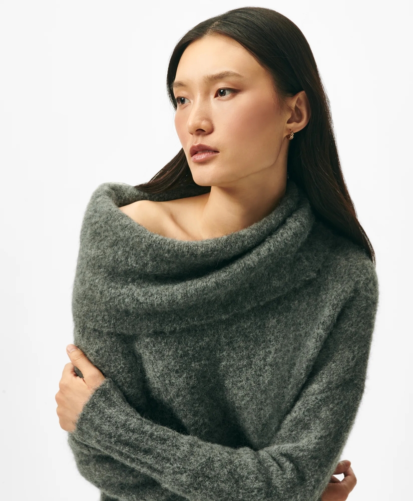 A standout seasonal piece. Our sweater looks just as chic worn as a cowl neck as it does off the shoulder. Our brushed finish gives the wool-alpaca blend a luxurious texture.