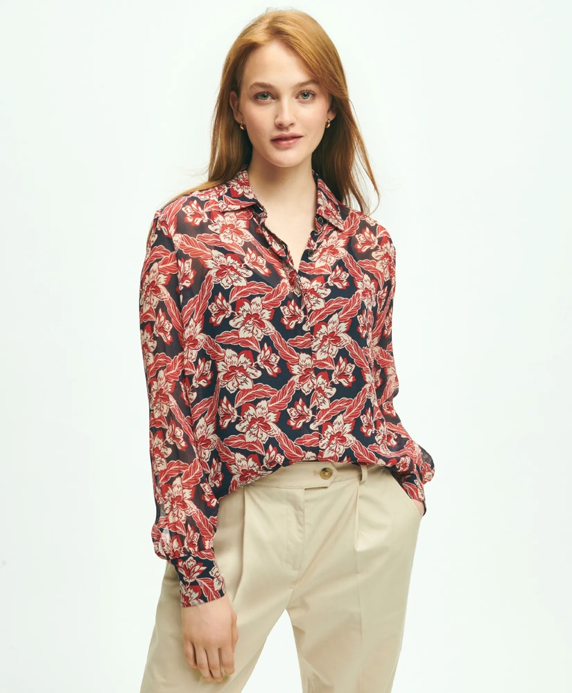 Crinkle Chiffon Tropical Floral Print Blouse